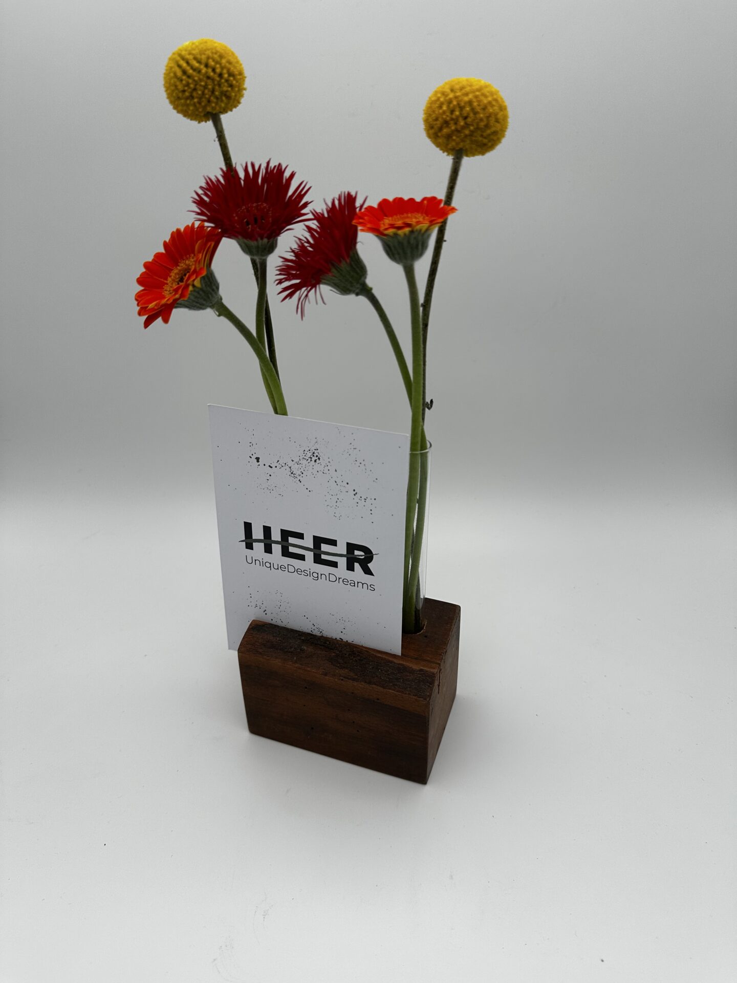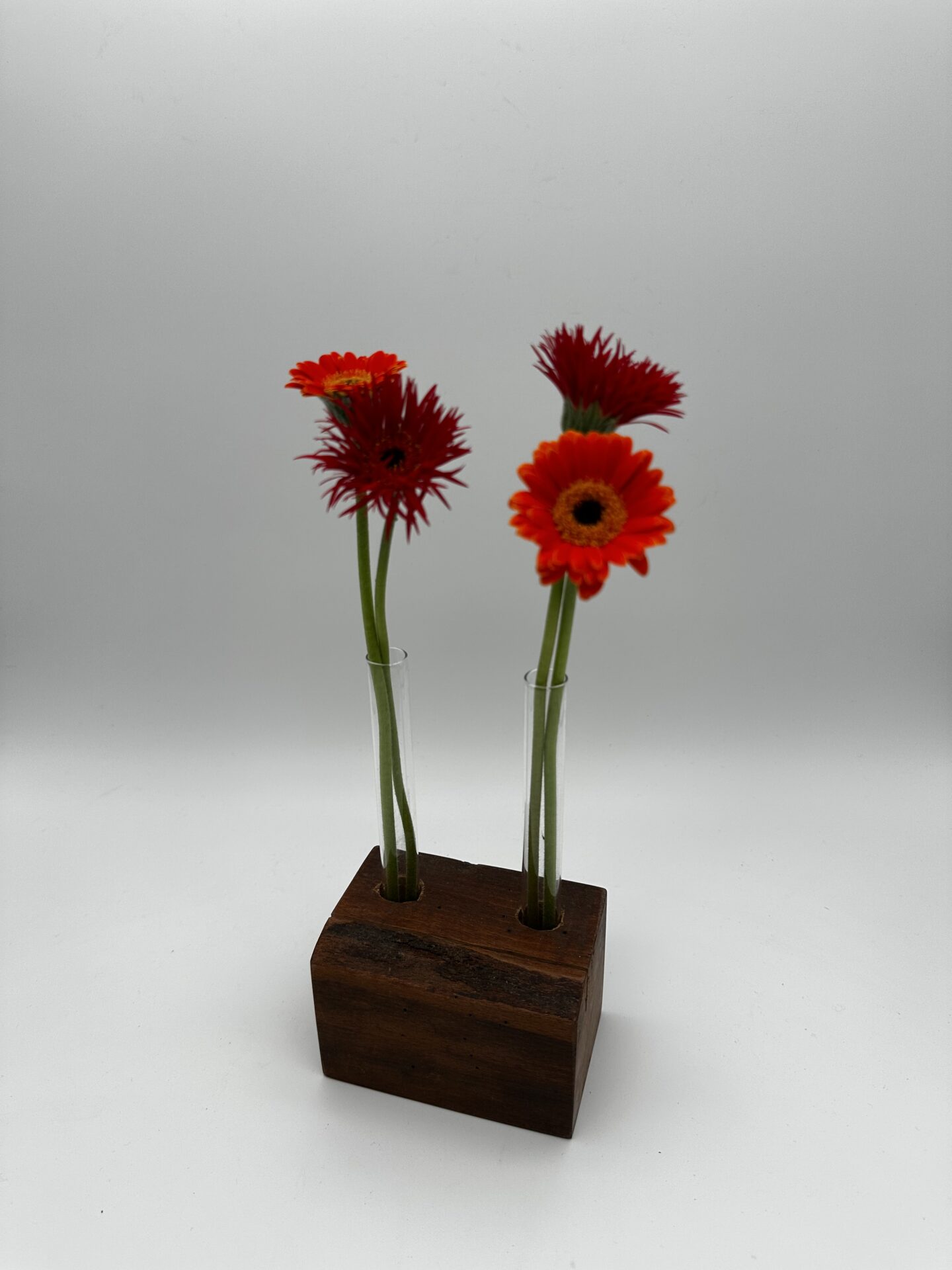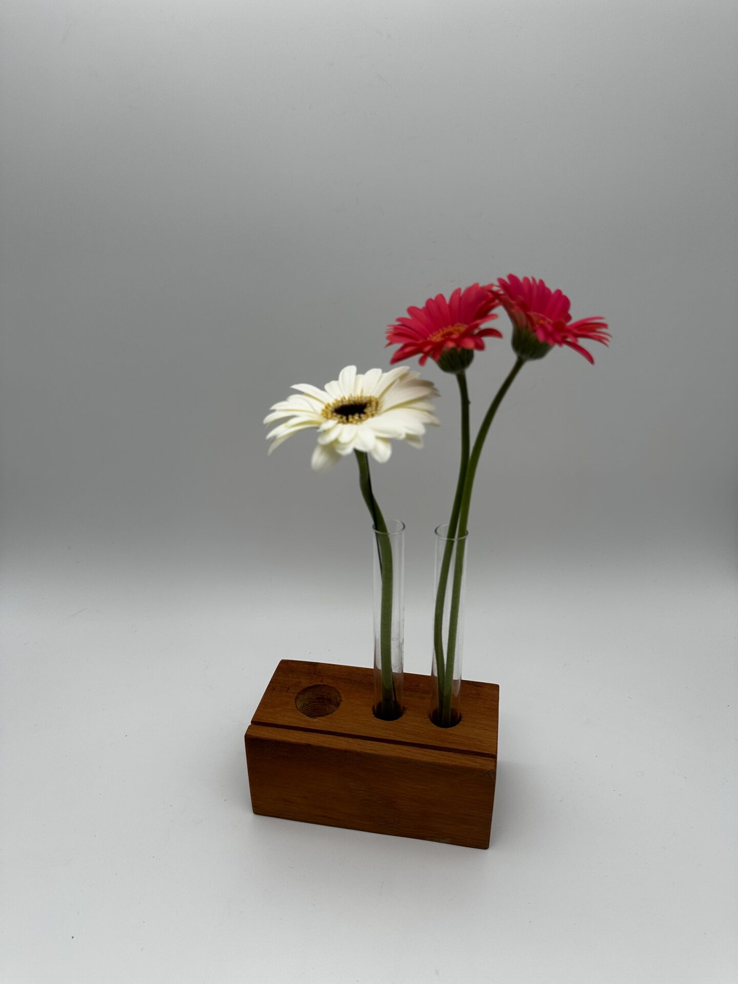 Platz für zwei Reagenzgläser macht den Halter zum perfekten Begleiter für frische Blumen oder dekorative Arrangements. Die Gläser sind herausnehmbar, sodass sie sich leicht reinigen oder befüllen lassen.